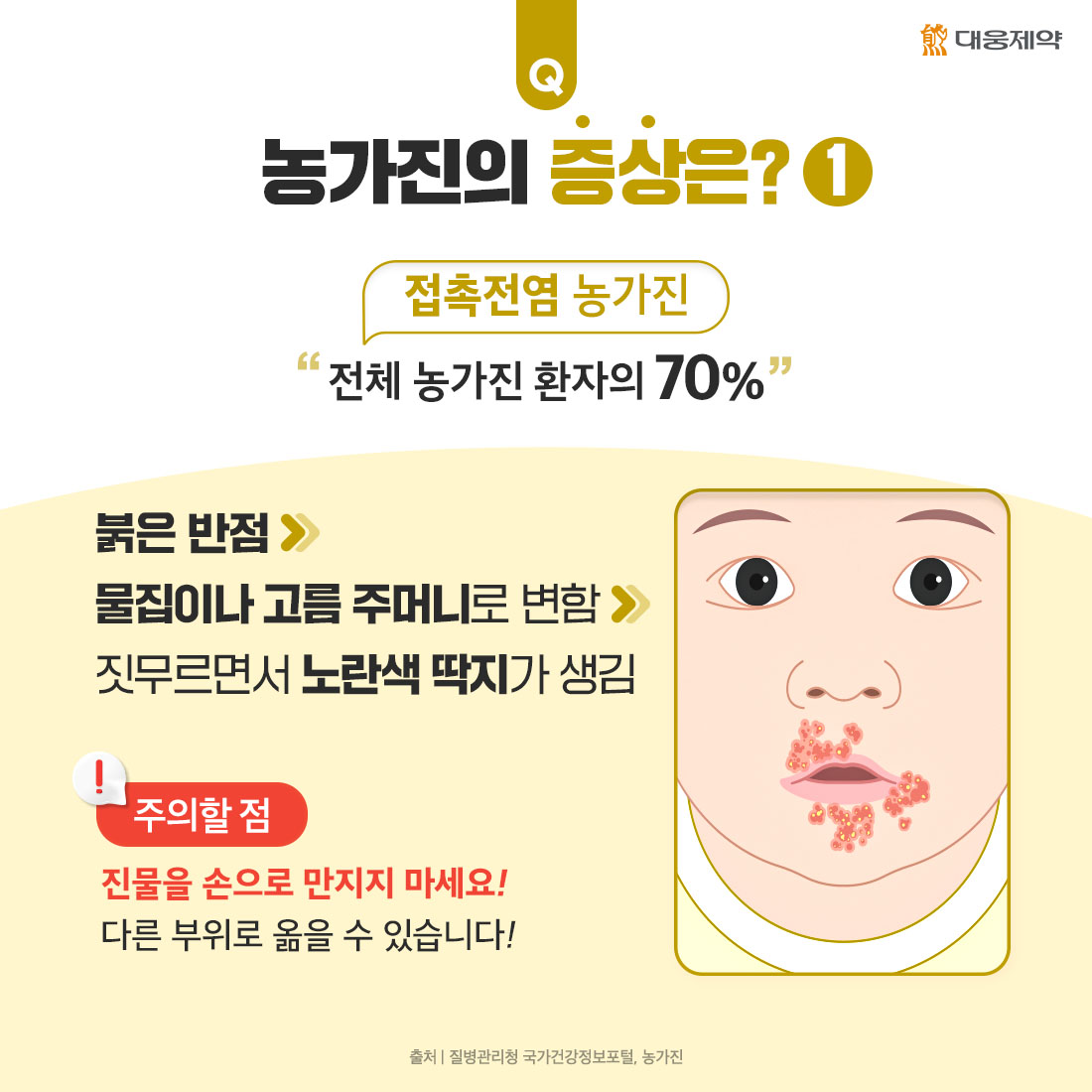 환자의 70%가 접촉전염 농가진에 해당합니다.
